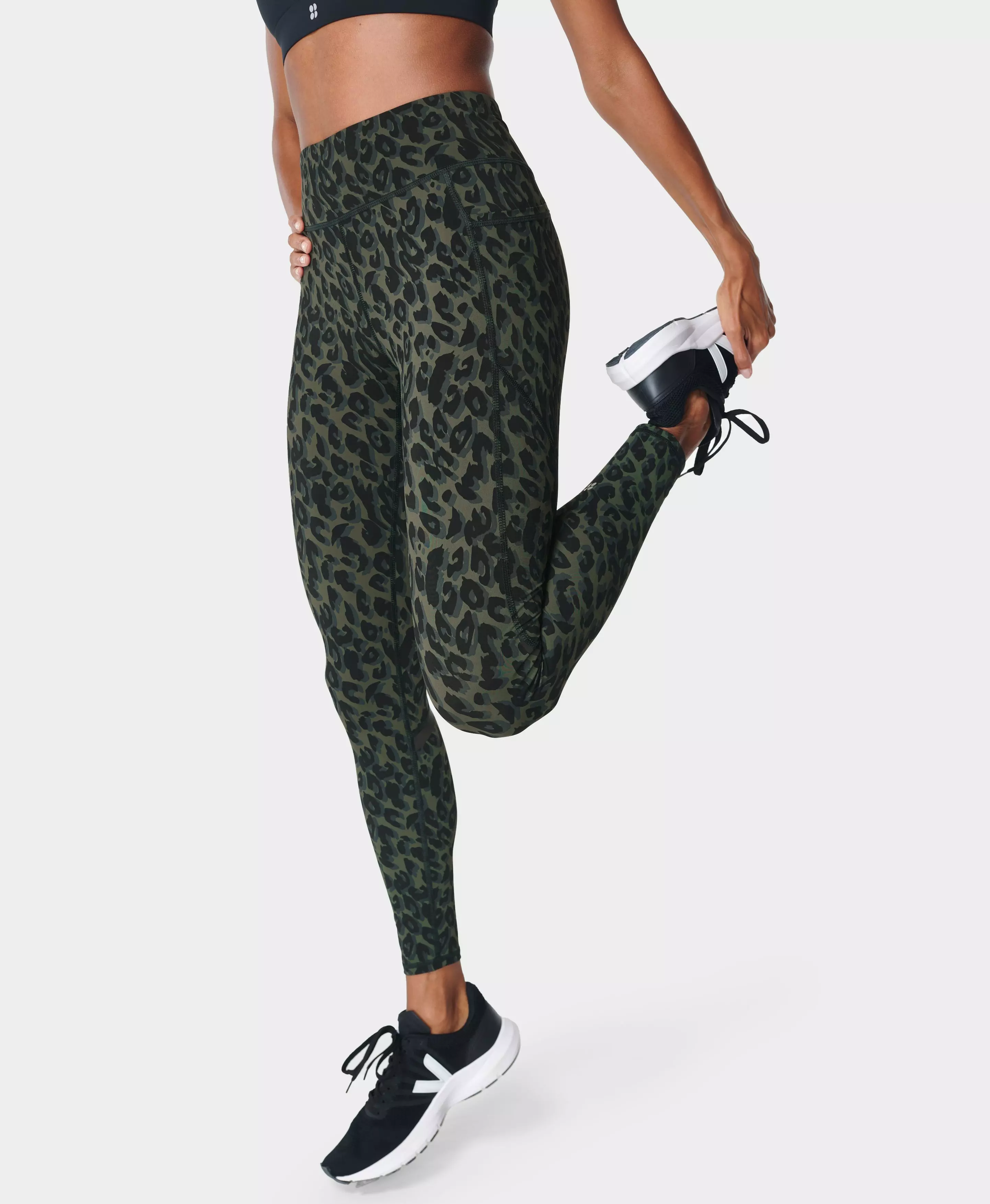 Zero Gravity High Waisted Running Leggings Oliveleopardprint Www Sweatybetty Com